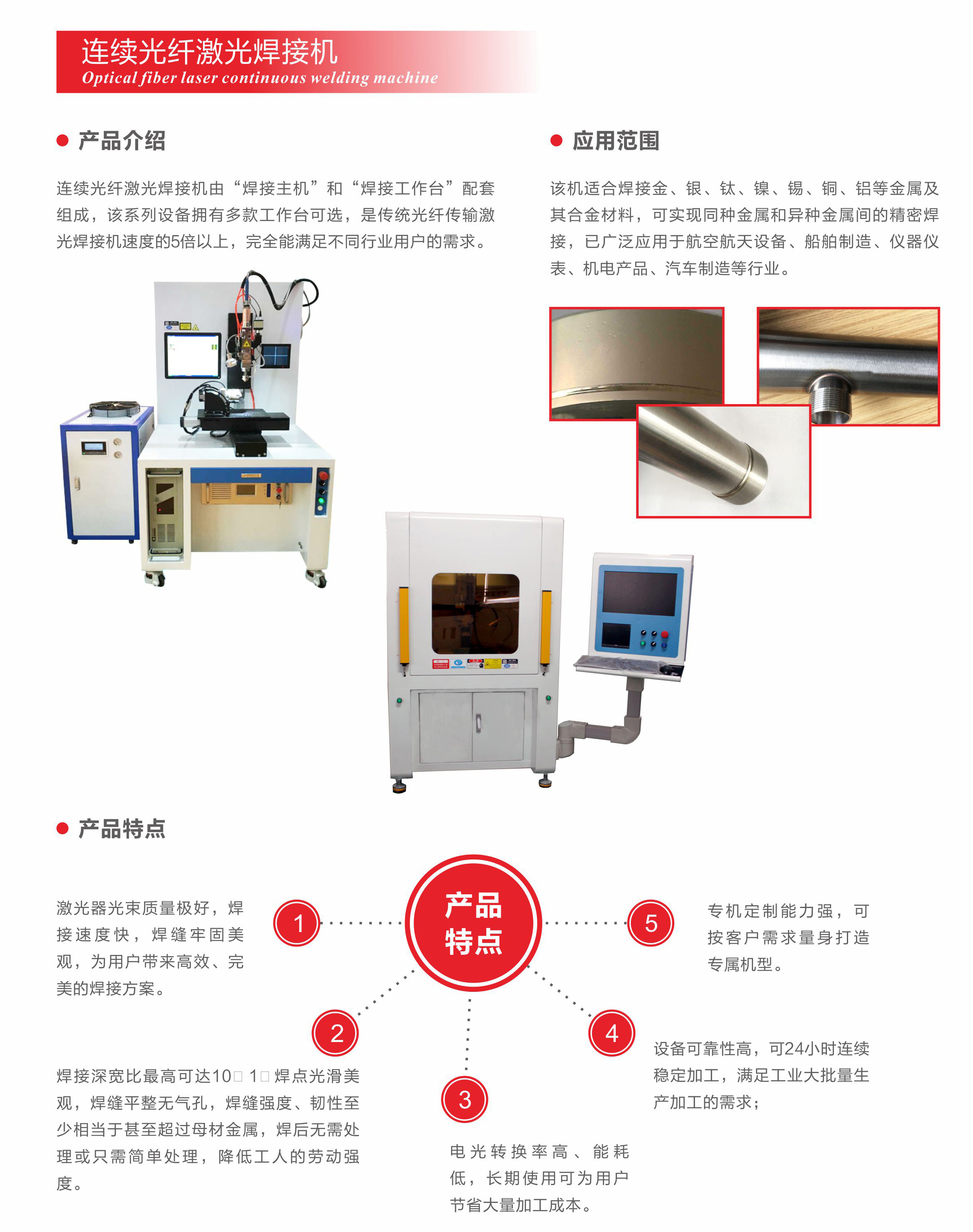該機(jī)適合焊接金、銀、鈦、鎳、錫、銅、鋁等金屬及其合金材料,可實(shí)現(xiàn)同種金屬和異種金屬間的精密焊接,已廣泛應(yīng)用于航空航天設(shè)備、船舶制造、儀器儀表、機(jī)電產(chǎn)品、汽車(chē)制造等行業(yè)。